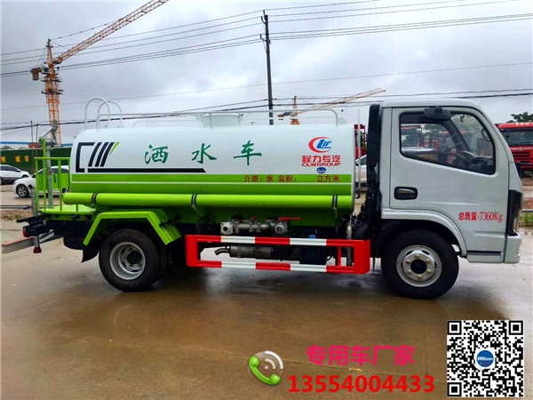 专用部分配专用洒水泵,带前冲、后洒、侧喷、后工作平台及洒水高压炮。配消防接口、自流阀,2根与罐体等长输水管,水位计,1个爬梯,两侧及后杠。后洒装置覆盖宽度达12米,均匀喷洒水流,保持沥青路面湿润防止开裂?