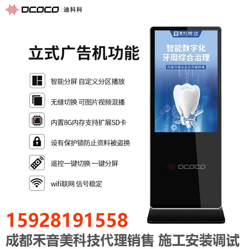 DCOCO/迪科科 落地立式液晶触摸屏广告一体机;主要用于商业场所的信息传播与品牌推广;商业场景应用、公共场所展示、产品广告与营销等。
