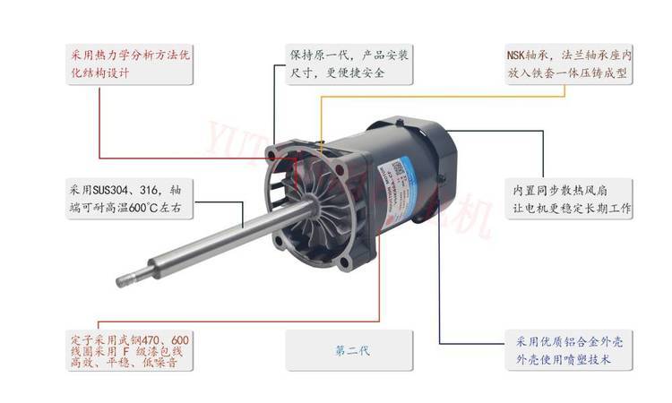 (4)高温马达采用高温H级绝缘材料, 马达在高温环境下安全运行,不老化、不烧坏。