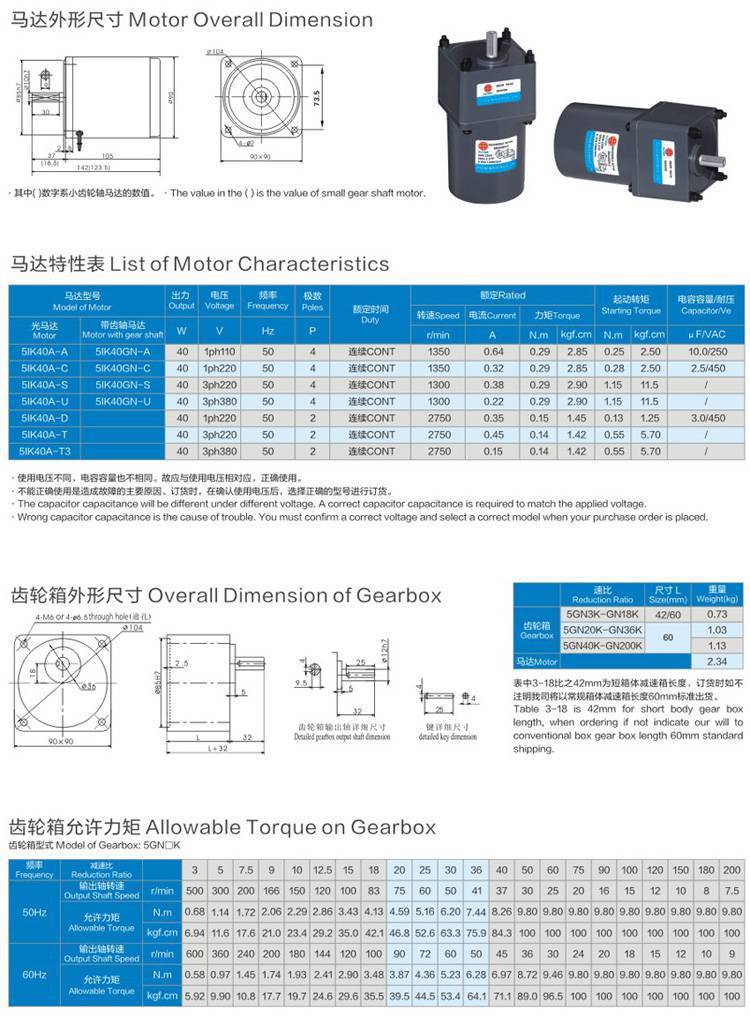 (2)调速马达(可做电压110V220V380V) :110V和220V可用小型调速盒将转速从90~1400RPM之间可调,380V需依靠变频器