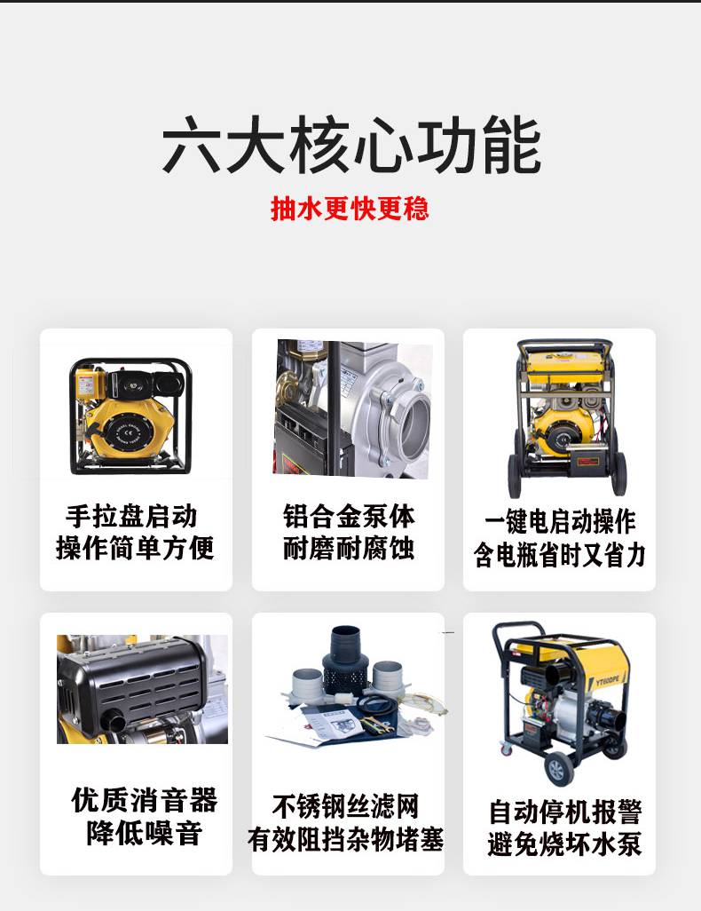 6 8寸柴油机抽水泵 移动式防汛应急排涝泵 伊藤动力YT80DPE/YT60DPE 泵轴位置 | 边立式 | ||