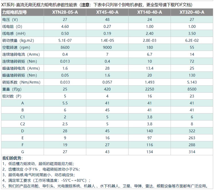 XT系列直流力矩电机无刷无框型机器人关节吊舱水下机器人