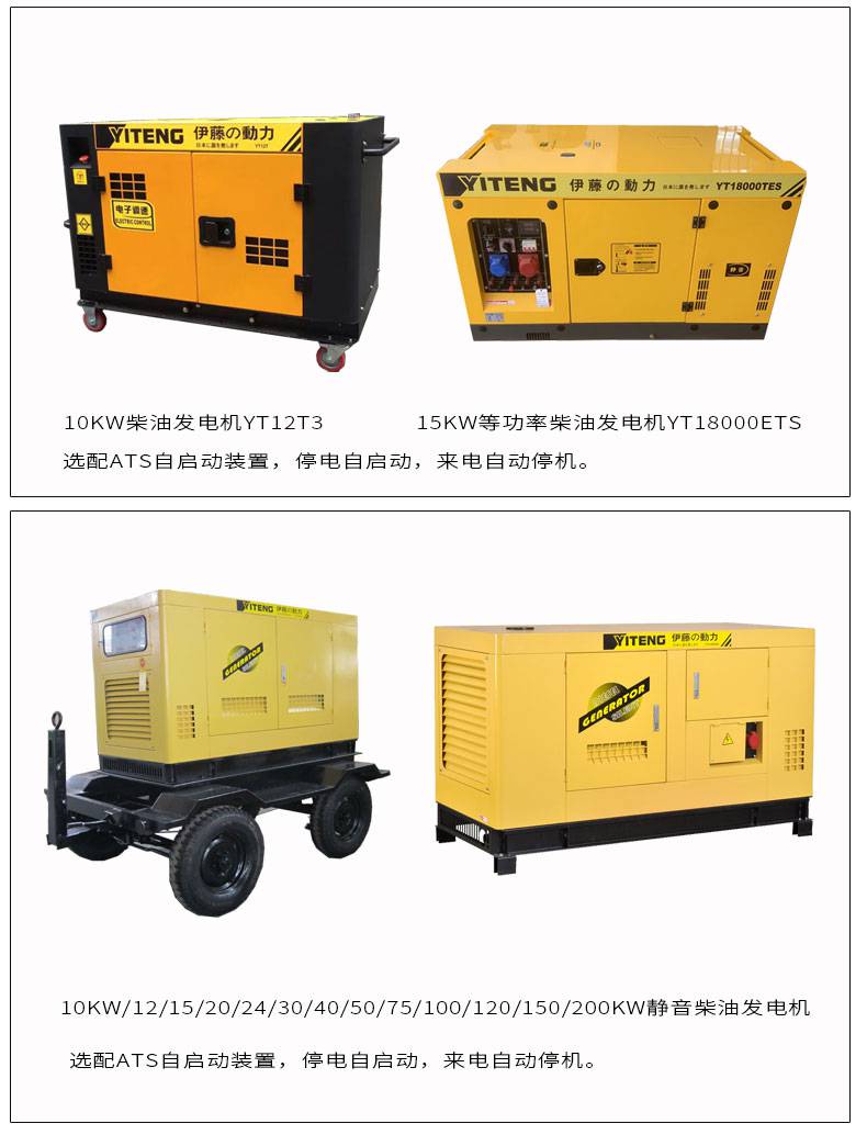 伊藤动力8KW5KW3KW柴油发电机YT6800E3 移动便携式单三相手/电启动 是否支持加工定制 | 是 | ||