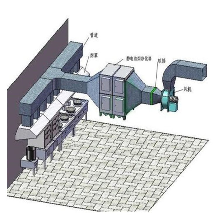 中央厨房全套厨具锅灶定制油烟净化系统排烟管道测量安装售后
