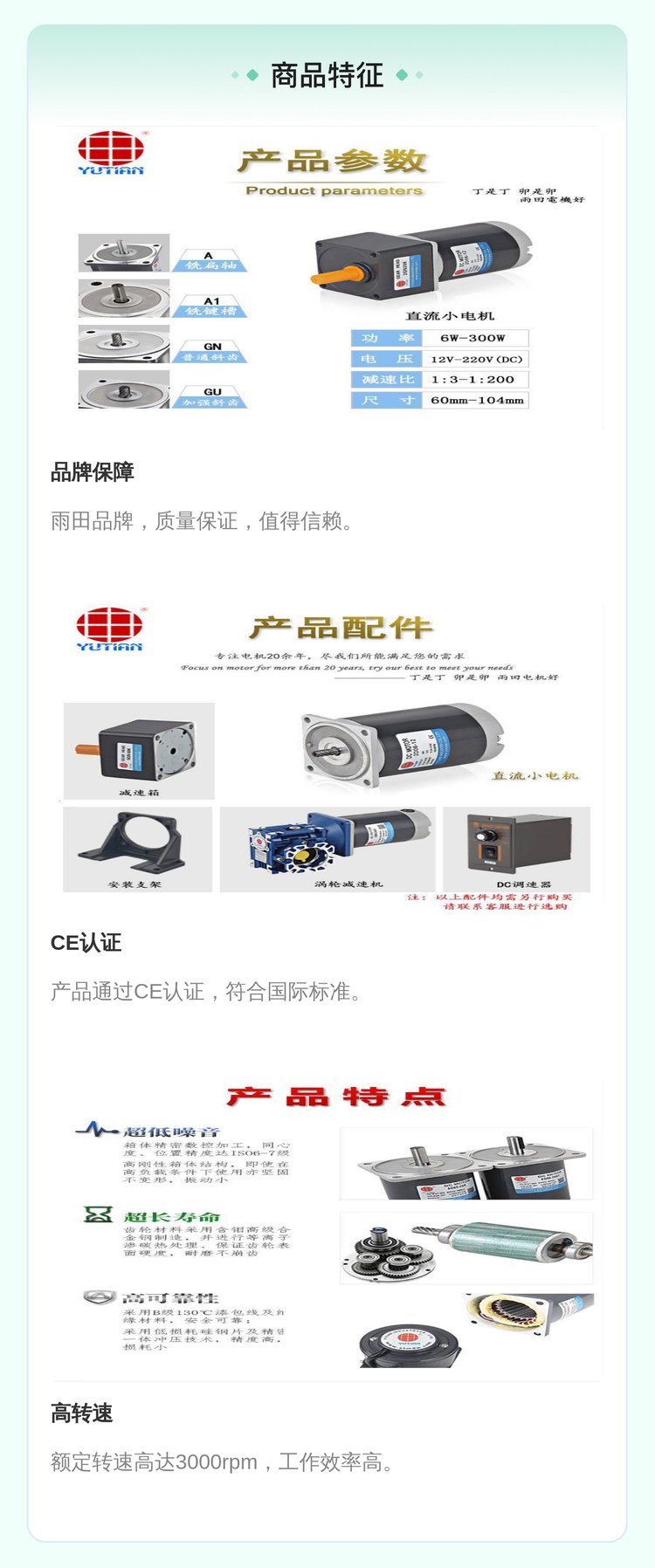 配件名称 | 减速箱、涡轮减速机、安装支架、DC调速器(需另行购买) | ||