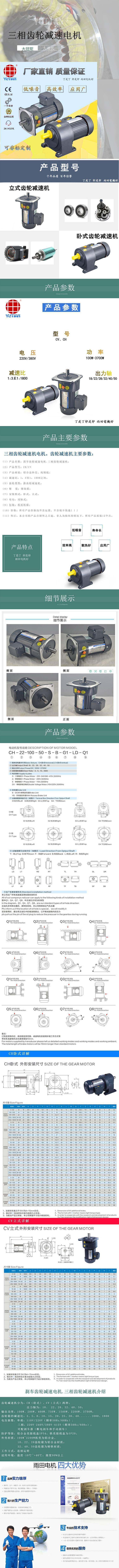 雨田电机缩框轴15K减速比,200W齿轮减速电机CV18-200-15-S