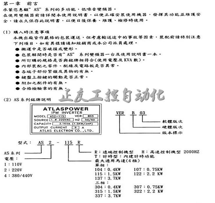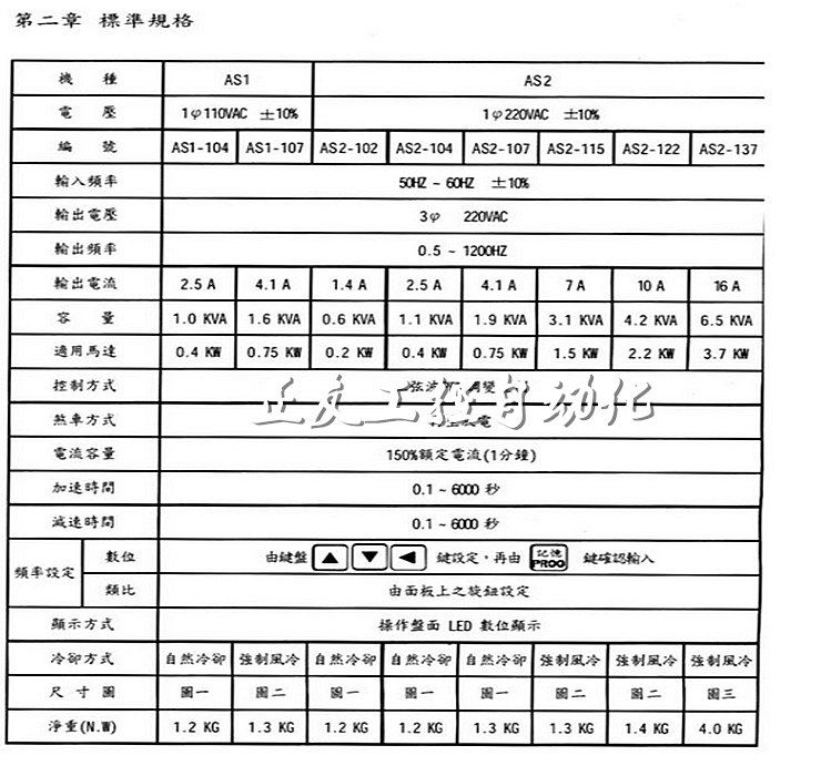 ? ? ? 台工德利变频器AS2系列为单相220V电压输入,三相220V电压输出;AS4系列为三相380V电压输入,三相380V电压输出。本公司AS2系列还有单相220V电压输入,单相220V电压输出变频器。 AS2系列-R则是有F300控制面板和延长线,AS4系列加延长线。