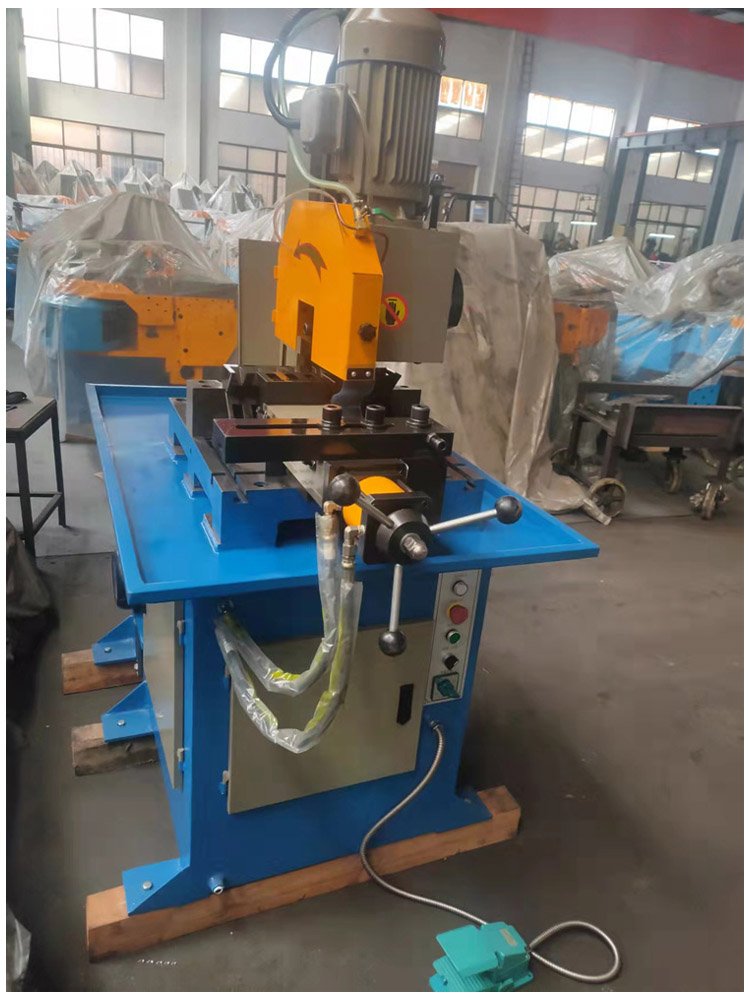 该机型具有操作简单、噪音小、无粉尘污染、锯切质量好等特点;采用垂直滑道式进刀,进刀有力平稳,特别适用于厚壁管和尺寸较大的中型管切割;锯切断面无翻边、无毛刺,省去了二道加工工序,大大提高了生产率;还可以斜切各种角度,斜切时工件原材料位置不变,占用空间小。