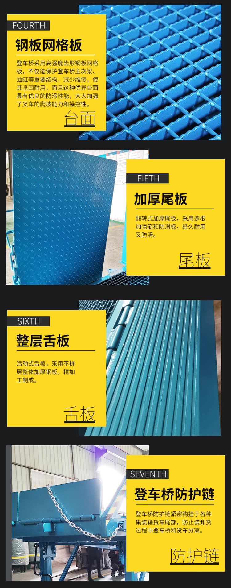 7、 可调节长度的索链用于钩住车辆,使登车桥与车辆即使发生移位时,也始终紧密贴合。