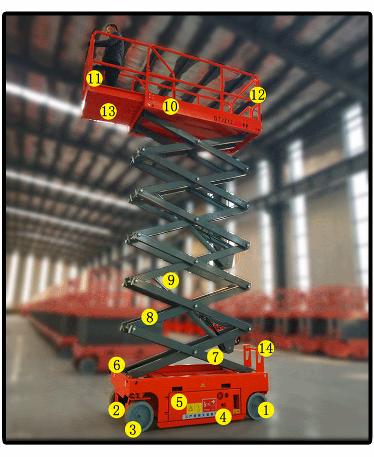 *不需外接电源,不需人工牵引,节省人力,只需一人便可完成高空作业。