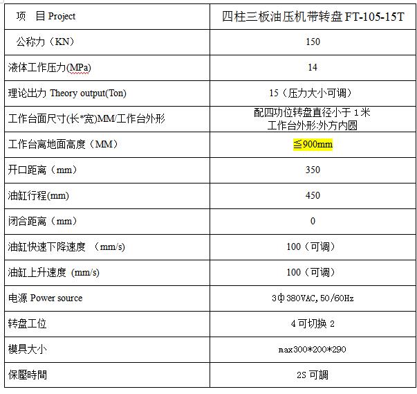 转盘油压机型号 | FT-105-5T | ||