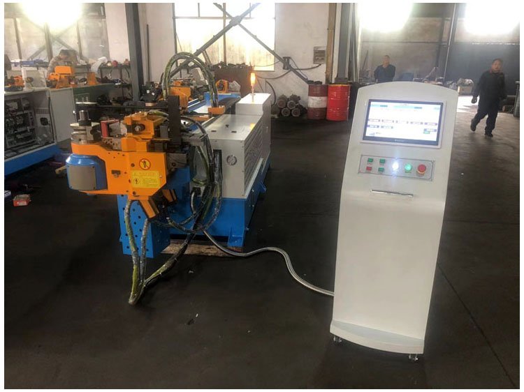 7、电气系统:配有15寸屏,可依工作需要修改参数。系统配置全部采用三菱品牌,稳定可靠(详情参见系统配置)。有紧停、脚踏开关、及弯管臂触碰安全开关,确保工作安全性。