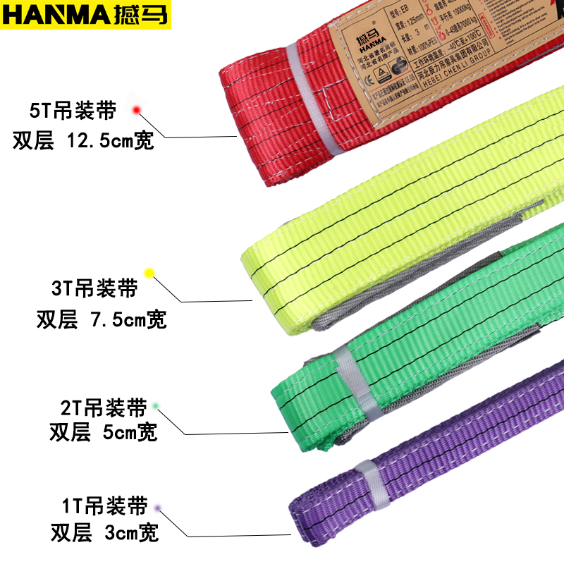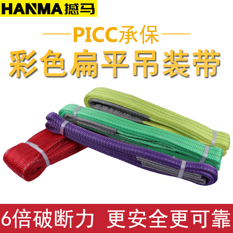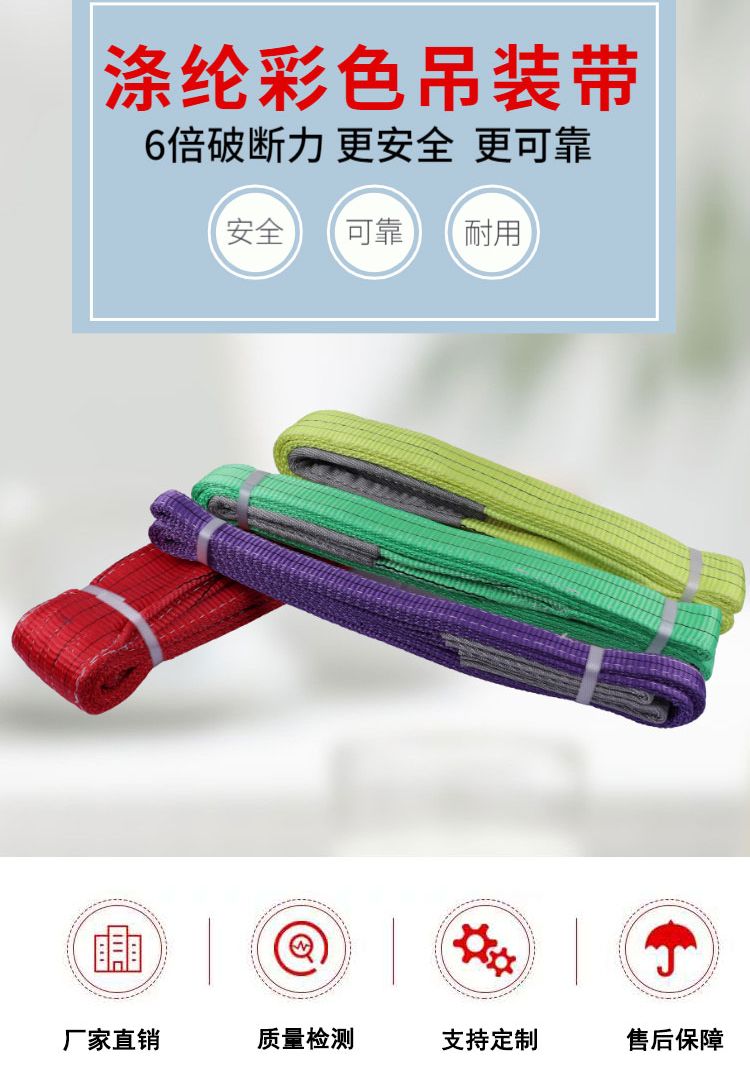 彩色扁平吊装带涤纶双扣合成纤维5吨10T20吨国标工业行车起重