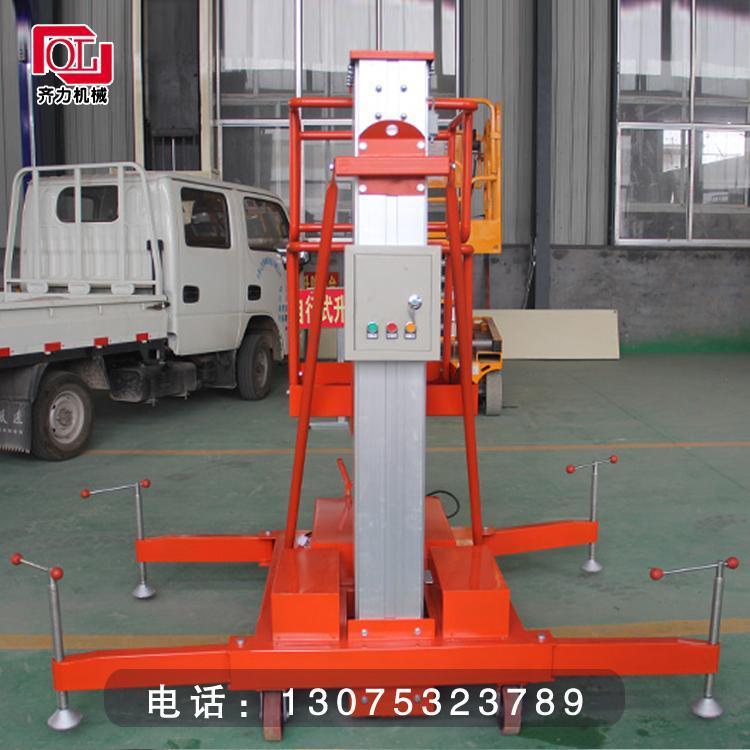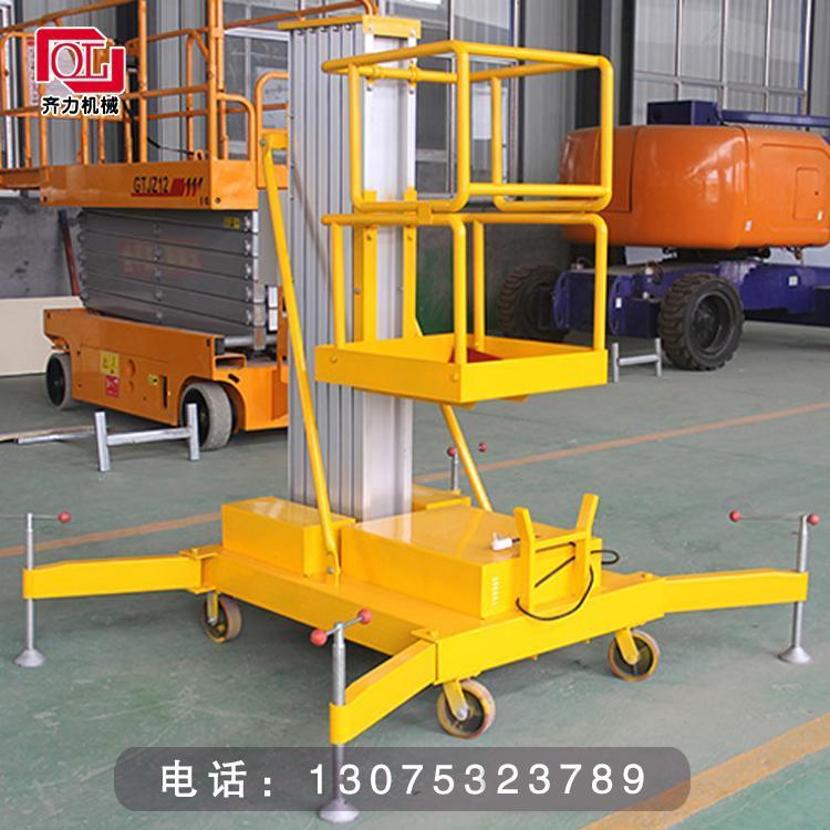 铝合金式液压升降平台采用高强度优质铝合金材料,具有造型美观、体积小、重量轻、升降平稳、?移动方便、升降平台平稳、操作方便、安全可靠等优点。