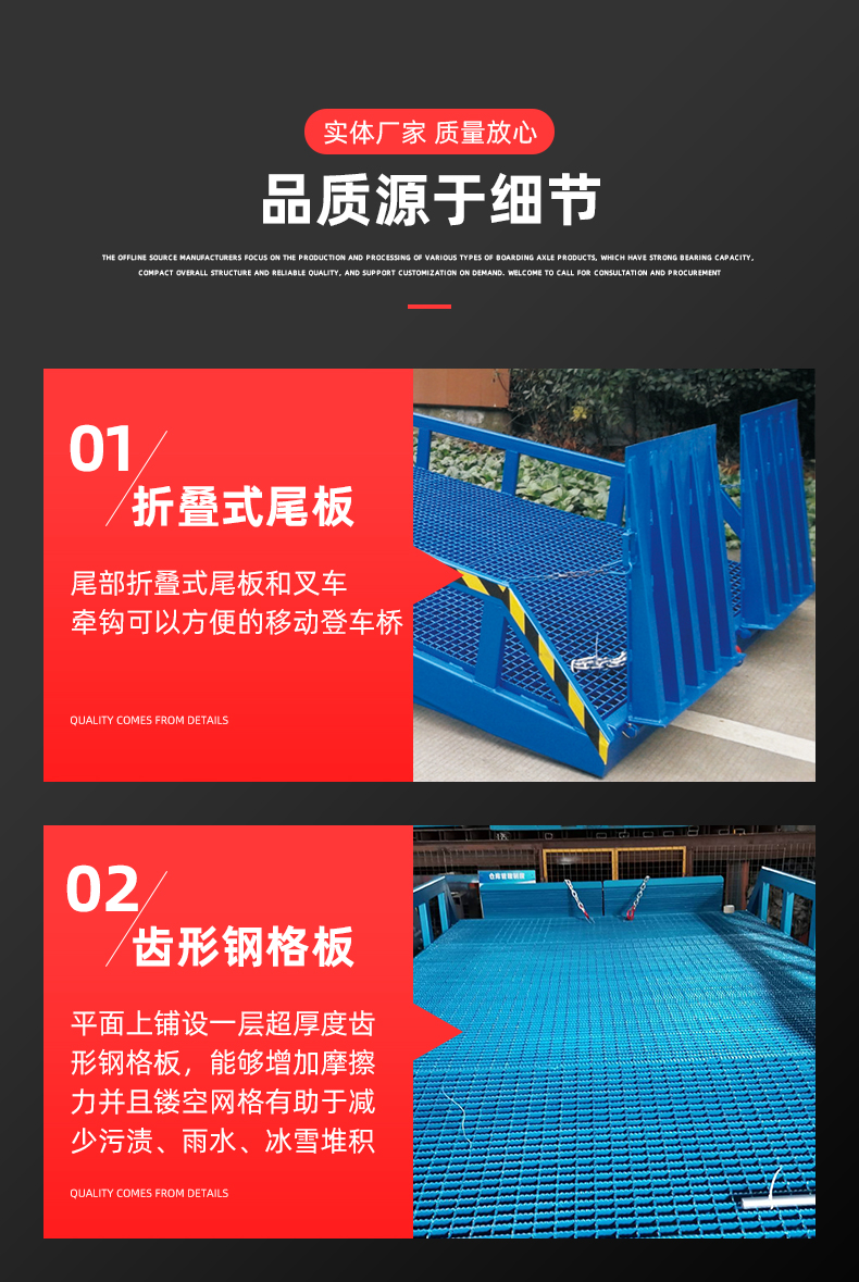 产品用途 | 叉车通过登车桥可直接进入集装箱装卸货物,省时省力 | ||