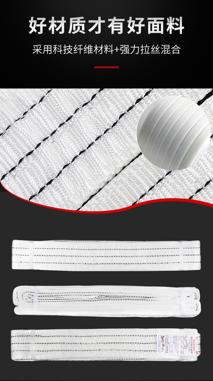厂家批发白色扁平吊装带吊车吊带1吨四层加厚丙纶材质