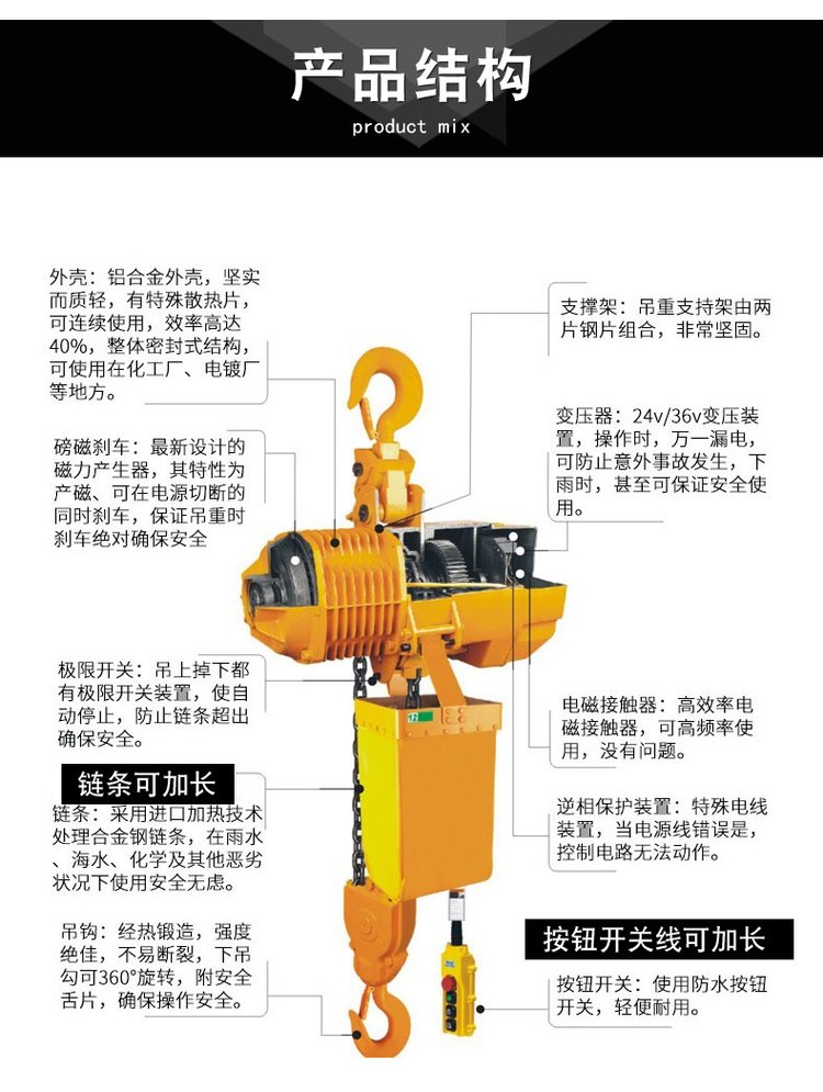 辰力3吨环链电动葫芦双链挂钩式超静音运行速度快