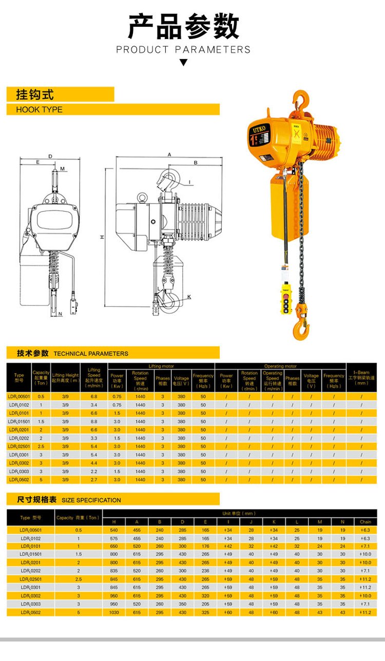 辰力3吨环链电动葫芦双链挂钩式超静音运行速度快