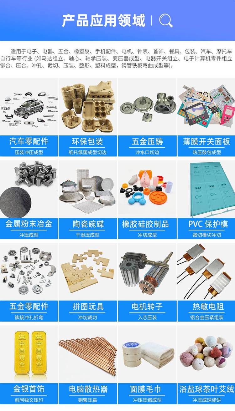 适用于金属或非金属零件的铆合、压印、成型、浅拉伸、整形及压力装配等;