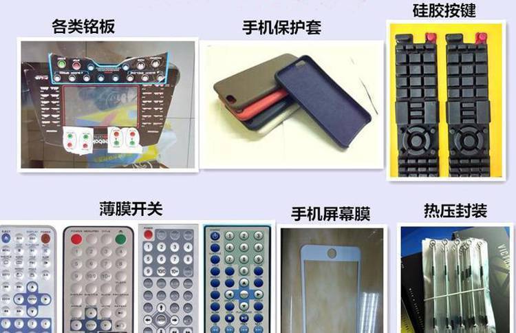 适用于各类PV、PE、PC、PVC、PBC等塑胶片经过加热后成型的产品,薄膜开关、薄膜面板打凸鼓包、成型等;
