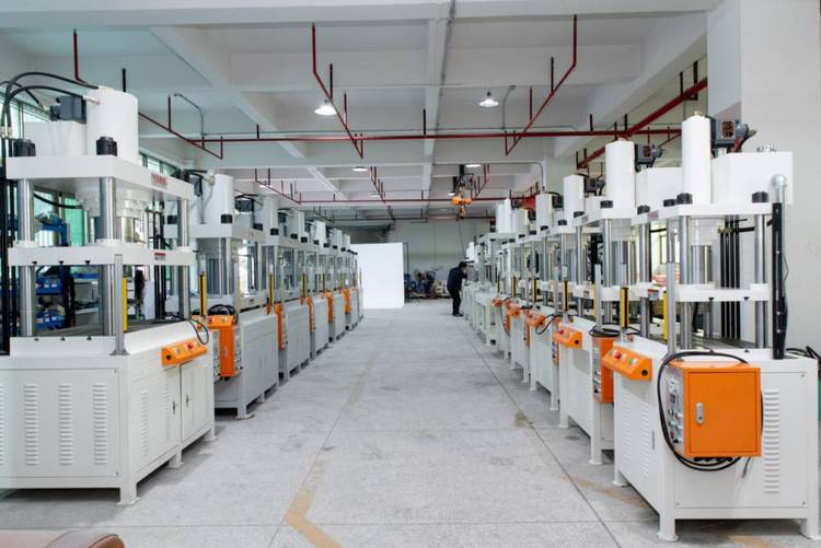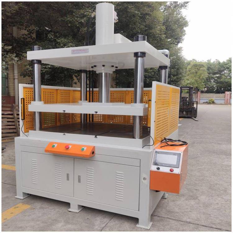 2.该油压机采用四柱三板开放式结构,活动板的垂直精度由四个导套控制,并配有红外线安全防护光栅。