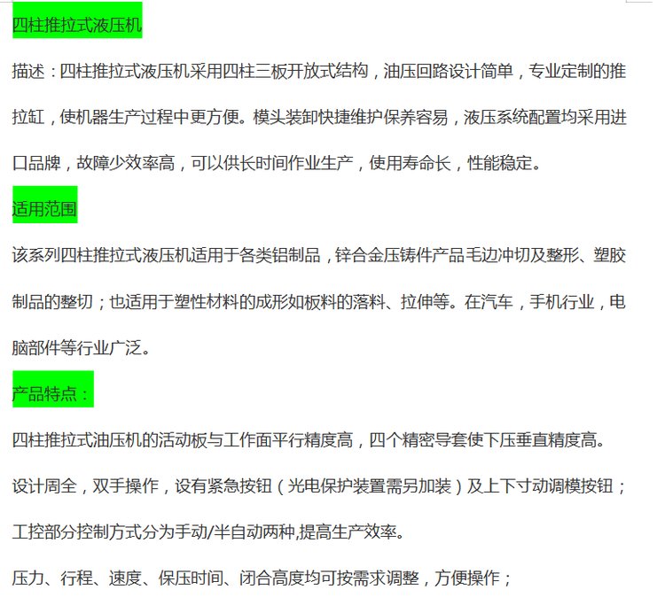 使用环境 | 适用于零件的浅整形、覆模及切边等 | ||