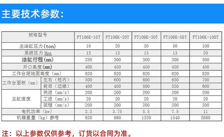 FT-106K-10T 20T 30T 50T 80T 100T四柱子母缸快速油压机采用四柱三板框架式结构,先进的子母缸液压回路.无论是噪音,速度, 耗电功率,均优于普通液压冲床,是款高速度高出力的新一代液压冲床,本机在压铸行业应用广泛。