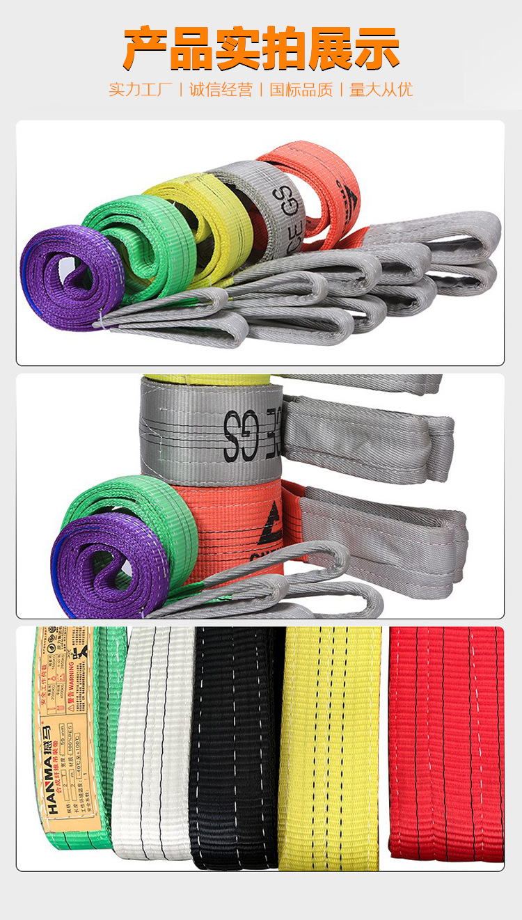 高强度起重吊带现货2T3T5T辰力彩色扁平双扣环眼吊装带