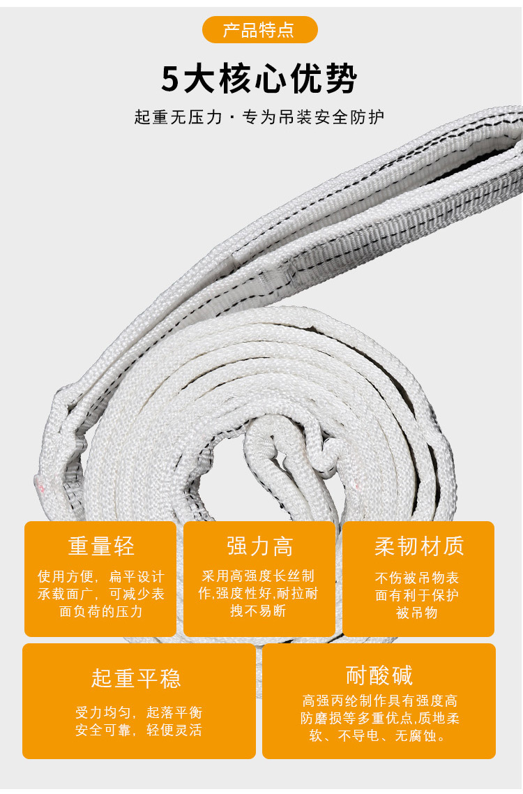 白色起重吊装带双扣环眼工业扁平丙纶带加厚加密吊带辰力厂家