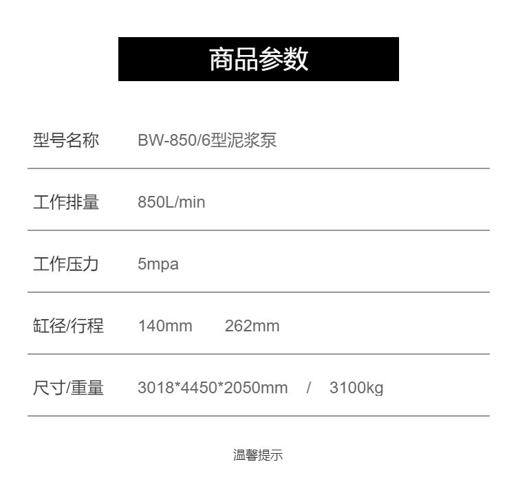 用途 | 钻机配套、清水、泥浆、水泥浆输送 | ||