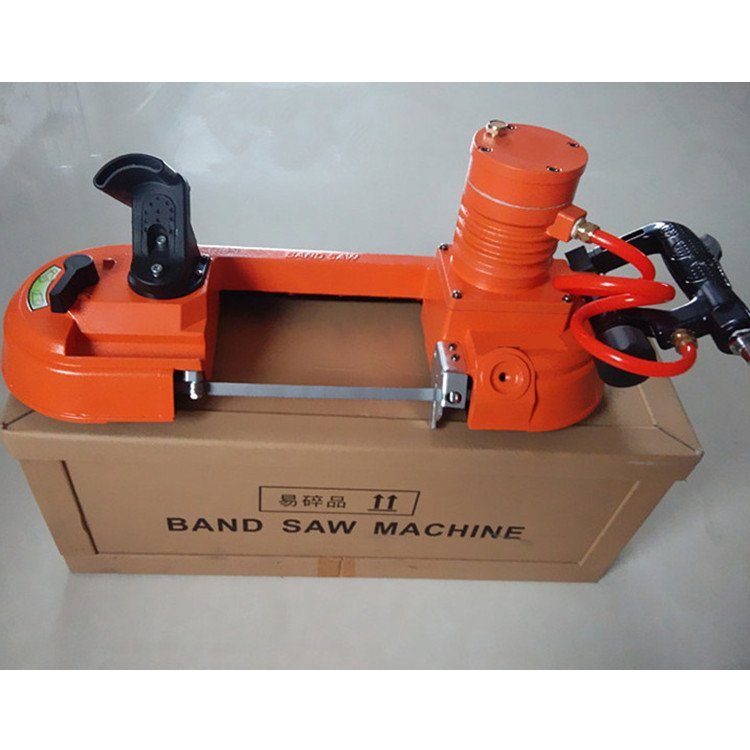 4.5用手指按压马达阀杆控制开关启动气马达,待带锯运转正常后,再轻轻接近被割工件,等切入一定深度后,再慢慢加力,然后快速切割。