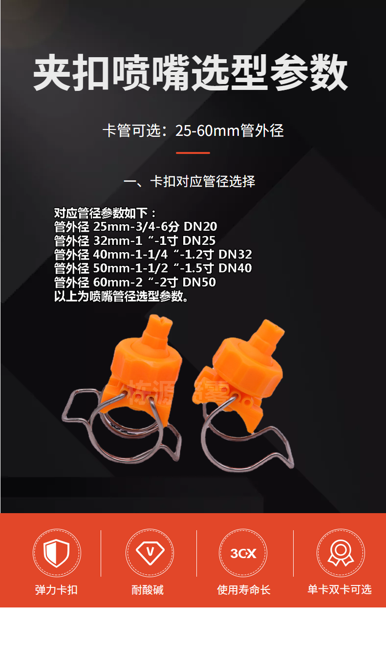 栋源前处理双夹扣喷嘴喷淋线球形不锈钢卡扣式喷雾淋雨喷嘴