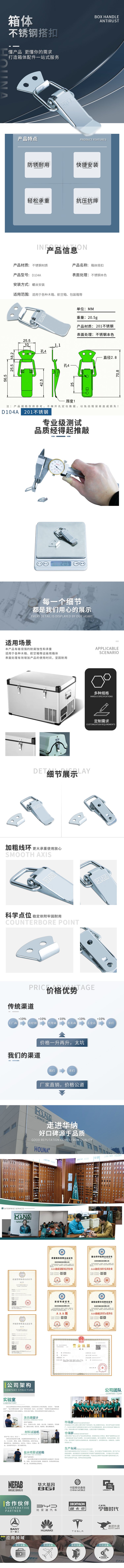 华纳五金监控电源盒锁扣不锈钢搭扣电池设备箱搭扣D104A