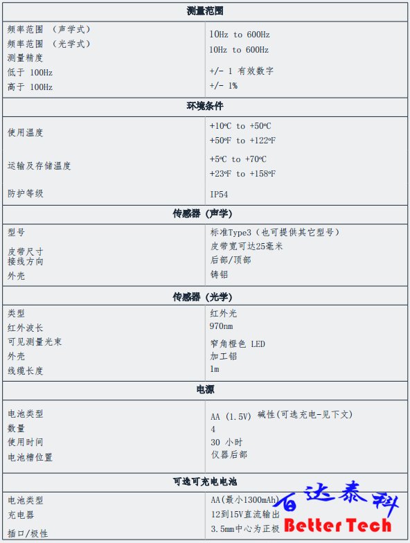 皮带张力计有光学式(10Hz - 600Hz)和声学式(10Hz - 600Hz)两种。