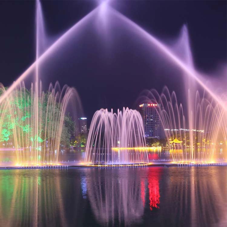 二是完全依靠喷泉设备人工造景。这类水景在建筑领域广泛应用,发展速度很快,种类繁多,有音乐喷泉、程控喷泉、摆动喷泉、跑动喷泉、光亮喷泉、游乐趣味喷泉如呐喊喷泉、超高喷泉、激光水幕电影等。"