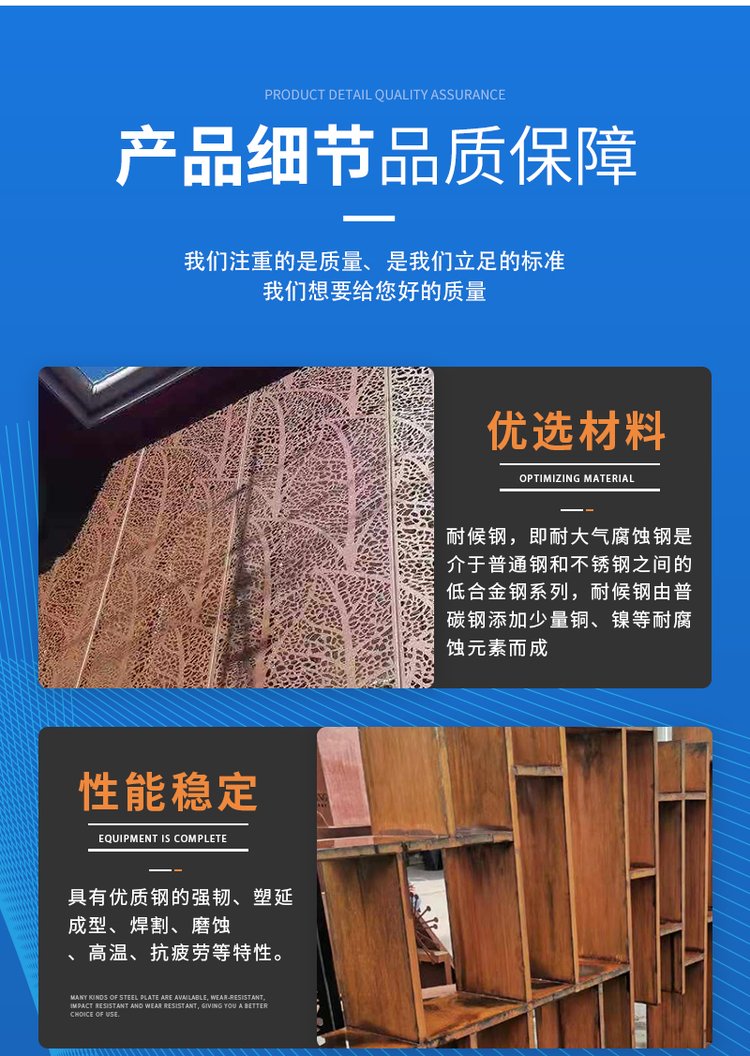 出口用烤漆复古铁艺屏风耐候钢幕墙山水景墙汉鼎激光穿孔铁锈板