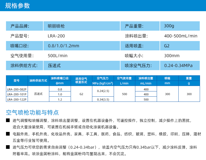 适用范围 | 建材五金,橡胶,塑料,压铸,玻璃等行业喷涂 | ||