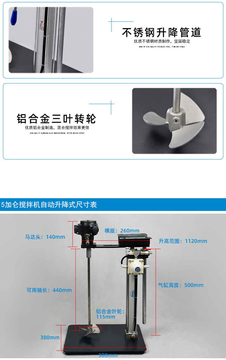明丽5加仑气动搅拌机油漆涂料腻子饲料搅拌器不锈钢自动式升降式