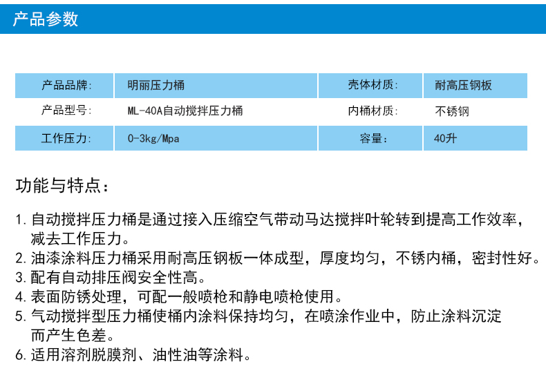 明丽自动压力桶 10L/20L/40L油漆胶水涂料喷涂全自动搅拌压力罐 型号ML-10A/20A/40A压力桶