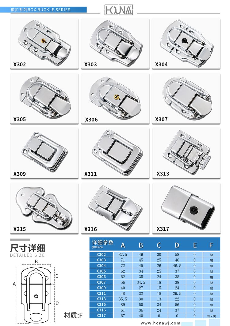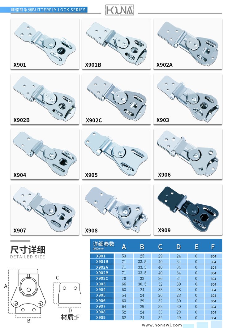 HOUNA/华纳 包装箱工具箱五金配件木箱蝴蝶锁扣大锁芯重型工业箱 蝴蝶锁扣 电器箱箱扣 行李箱上的扣X205-铬 杭州