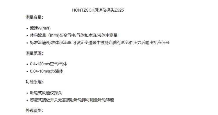 HONTZSCH风速仪探头ZS25适用于流速测量可配一体化变送器