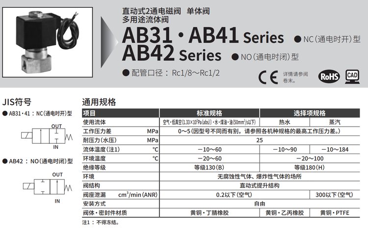 阀座泄漏 cm3 /min(ANR) | 0.2或300以下(空气) | ||