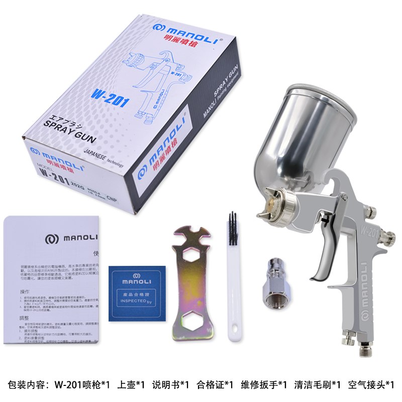明丽W-201油漆喷枪家具木门水性漆专用空气雾化上下壶底漆喷涂枪