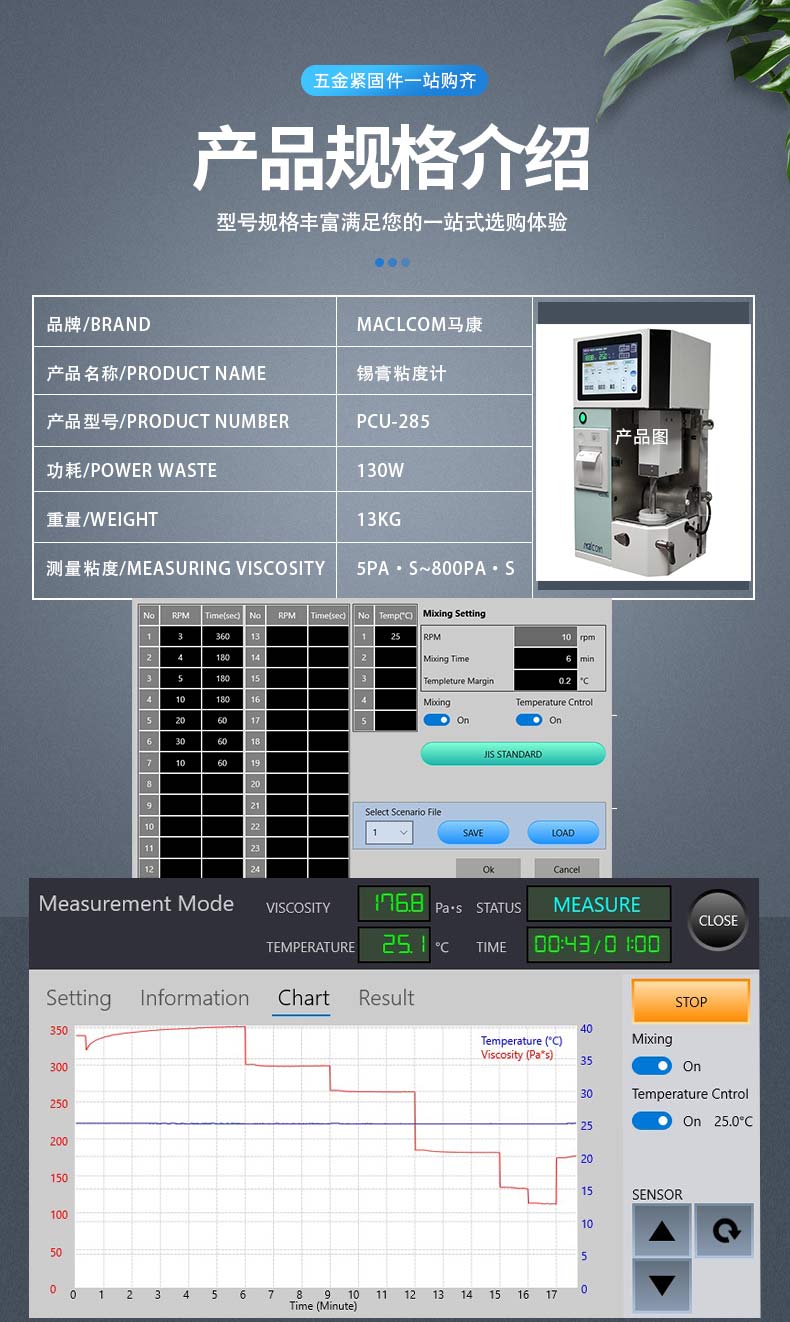 日本MALCOM马康螺旋-锡膏粘度计PCU-285自动测定行业标准产品