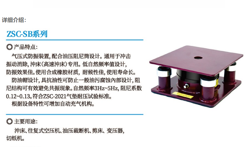气垫式减震器冲压机空气减震选ZSC兆山辰生产厂家可订制