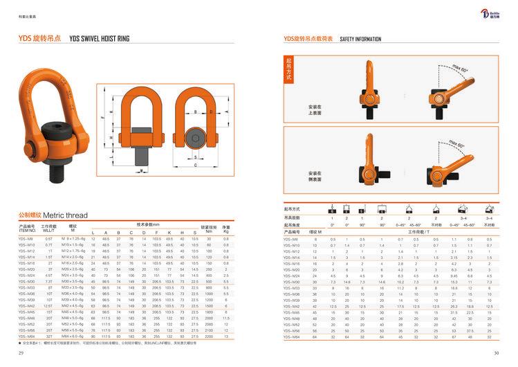 YDS-M8,YDS-M10,YDS-M12,YDS-M14,YDS-M16,YDS-M20,YDS-M24,YDS-M30,YDS-M36,YDS-M42,YDS-M48,YDS-M56,YDS-M64各种规格都有现货,美制螺纹、英制螺纹也都有货,倍力特旋转吊环外形有很多样式,欢迎联系梦梦一五八二二九灵灵二陆陆。