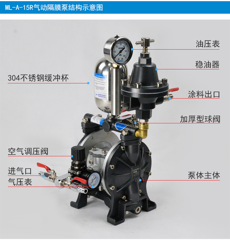 明丽ML-A-15R稳压型气动双隔膜泵喷漆喷涂泵油泵泵浦