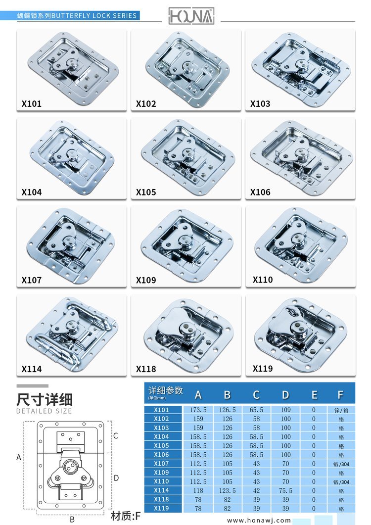 HOUNA/华纳 蝴蝶锁扣木箱进出口包装箱搭扣蝴蝶锁芯锁扣挂锁搭扣卡扣挂扣生产厂家? 重型搭扣 苏州锁扣锁定制 铁岭
