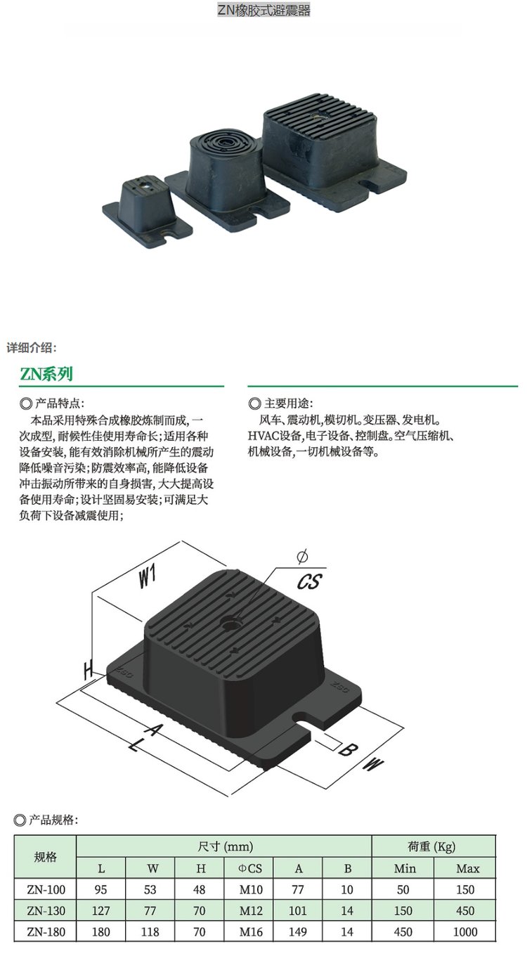 兆山辰ZN橡胶式减震器模切机冲床风机等设备减震隔震生产厂家