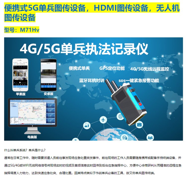 无人机4G5G图传单兵HDMI无线4K视频传输直播编码器